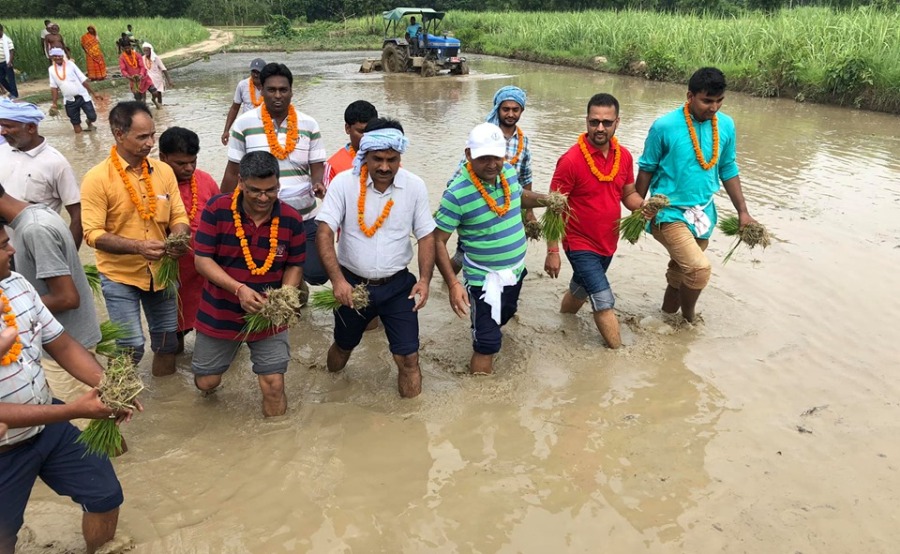 धनुषाको बटेश्वर गाउँपालिका– १ चित्रपुरमा आयोजित रोपाइँमा प्रदेशका मन्त्रीदेखि कर्मचारीसम्म सहभागी भए । रोपाइँमा प्रदेश दुईका आर्थिक मामिला मन्त्री विजयकुमार यादव, कृषि राज्यमन्त्री योगेन्द्र राय यादव, निति आयोगका सदस्य सुरेन्द्र झा, कृषि विकास निर्देशनालयका निमित्त प्रमुख ओमप्रकाश बैराजीलगायत नेता र कर्मचारी सामेल थिए ।