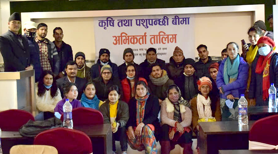 नेपाल इन्स्योरेन्सले सुदूरपश्चिम प्रदेशको कञ्चनपुरमा कृषि तथा पशुपन्छी बिमा अभिकर्तासम्बन्धी तीनदिने तालिम आयोजना गरेको छ । कम्पनीले माघ १५ गतेदेखि १७ गतेसम्म कञ्चनपुरको महेन्द्रनगरस्थित होटल न्यु चेतनमा बिमा अभिकर्ता तालिम आयोजना गरेको हो ।