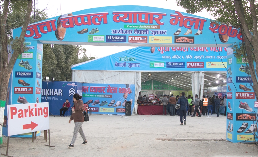 काठमाडौं । नेपाली जुत्ताघरको आयोजनामा भृकुटीमण्डपस्थित ठूलो चौरमा आयोजना भैरहेको ‘जुत्ता चप्पल व्यापार मेला २०७६’ भैरहेको छ ।