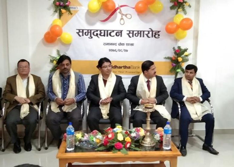 रामानन्दचोकमा शुक्रबार बिहान एक कार्यक्रमका बीच सिद्धार्थ बैंक लिमिटेडको प्रदेश २ प्रमुख हरिप्रसाद तिम्सिनाको अध्यक्षतामा आयोजित कार्यक्रममा प्रदेश २ का आन्तरिक मामिला तथा कानुनमन्त्री ज्ञानेन्द्रकुमार यादवले सिद्धार्थ बैंकको शाखा कार्यालयको उद्घाटन गरेका हुन् ।