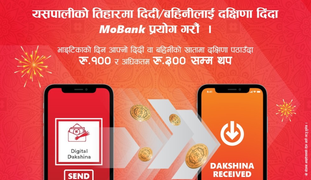 यस योजनाअन्तर्गत MoBank एप प्रयोग गरी दक्षिणा दिँदा बैंकका ग्राहकहरूले MoBank एपमा रहेको ‘Digital Dakshina’ मा ट्याप गरी आफूले दिन चाहेको रकम, एकाउन्ट नम्बर, खातावालाको नाम तथा Remarks मा BHAITIKA जस्ता विवरण अनिवार्य रुपमा उल्लेख गर्नुपर्ने हुन्छ । भाइटीकाको दिन दिदीबहिनीहरूको हातबाट टिका ग्रहण गरेपछि दाजुभाइले सगुनस्वरूप दक्षिणा दिने प्रचलन रहिआएकोमा डिजिटल माध्यमको प्रयोग गरी दक्षिणा स्थानान्तरण गर्दा डिजिटल बैंकिङ प्रवद्र्धनमा समेत सघाउ पुग्ने विश्वास लिएको छ ।