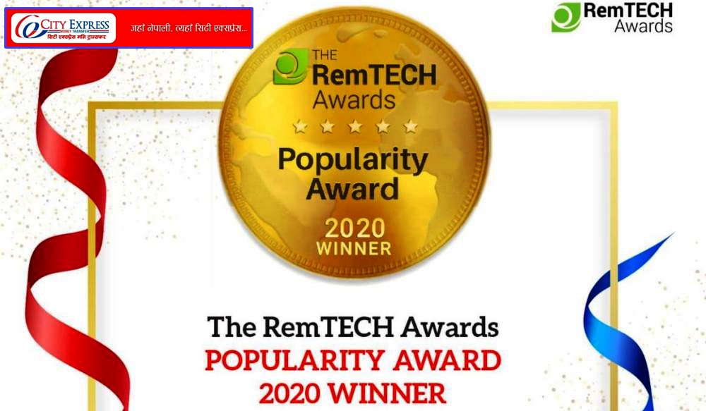सिटी एक्सप्रेस मनी ट्रान्सफरले अमेरिकाको फ्लोरिडामा आयोजित Remtech Awards 2020 मा ‘पपुलारिटी अवार्ड’ जित्न सफल भएको छ । रेमिटान्स क्षेत्रमा नेपालबाट सामाजिक प्रभावका निम्ति अन्तर्राष्ट्रिय अवार्ड जित्न सफल भएको यो पहिलोपटक हो । नोभेम्बर १८ मा आयोजित कार्यक्रममा संसारभरबाट ३२ प्रतिस्पर्धीले सहभागिता जनाएका थिए ।