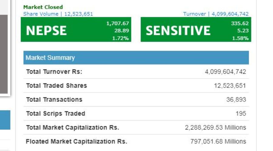 गृहपृष्ठ दुई दिनमै ५४ अंकले बढ्यो सेयर बजार, ८ अर्ब १९ करोडको कारोबार