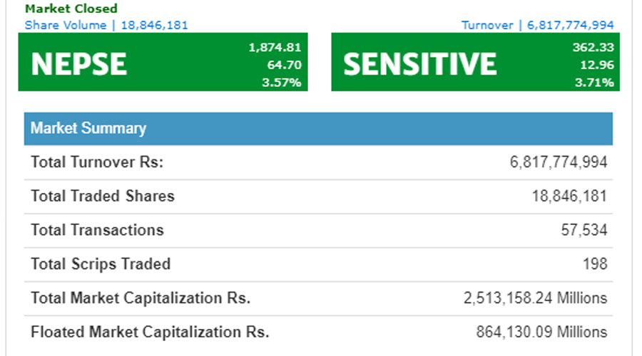 गृहपृष्ठ सेयर बजारमा उछाल, ऐतिहासिक उचाइनजिक नेप्से