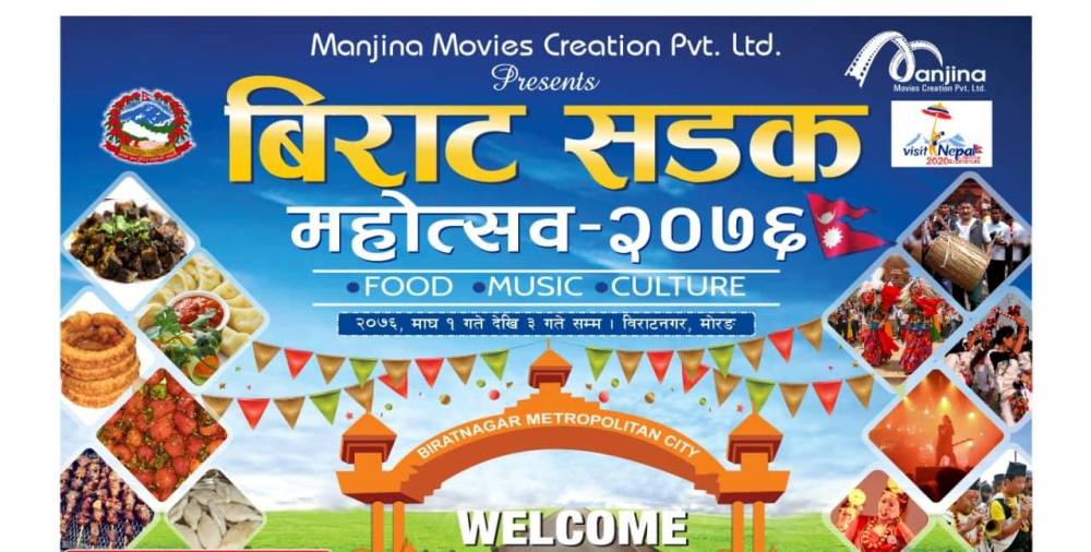 सरकारले सन् २०२० लाई नेपाल भ्रमण वर्षको रुपमा मनाउने तयारी गरिरहेको सन्दर्भमा विराटनगरमा पनि सडक महोत्सव आयोजना हुने भएको छ । मञ्जिना मुभिज क्रिएसनको आयोजनामा माघ १ देखि तीन दिने महोत्सव आयोजना हुने भएको हो ।