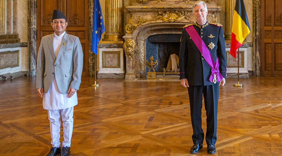 Gahendra Rajbhandari, Ambassador of Nepal to Belgium, presented his Letters of Credence to the King of the Belgians, His Majesty King Philippe amidst a special official ceremony held today at the Royal Palace in Brussels.
