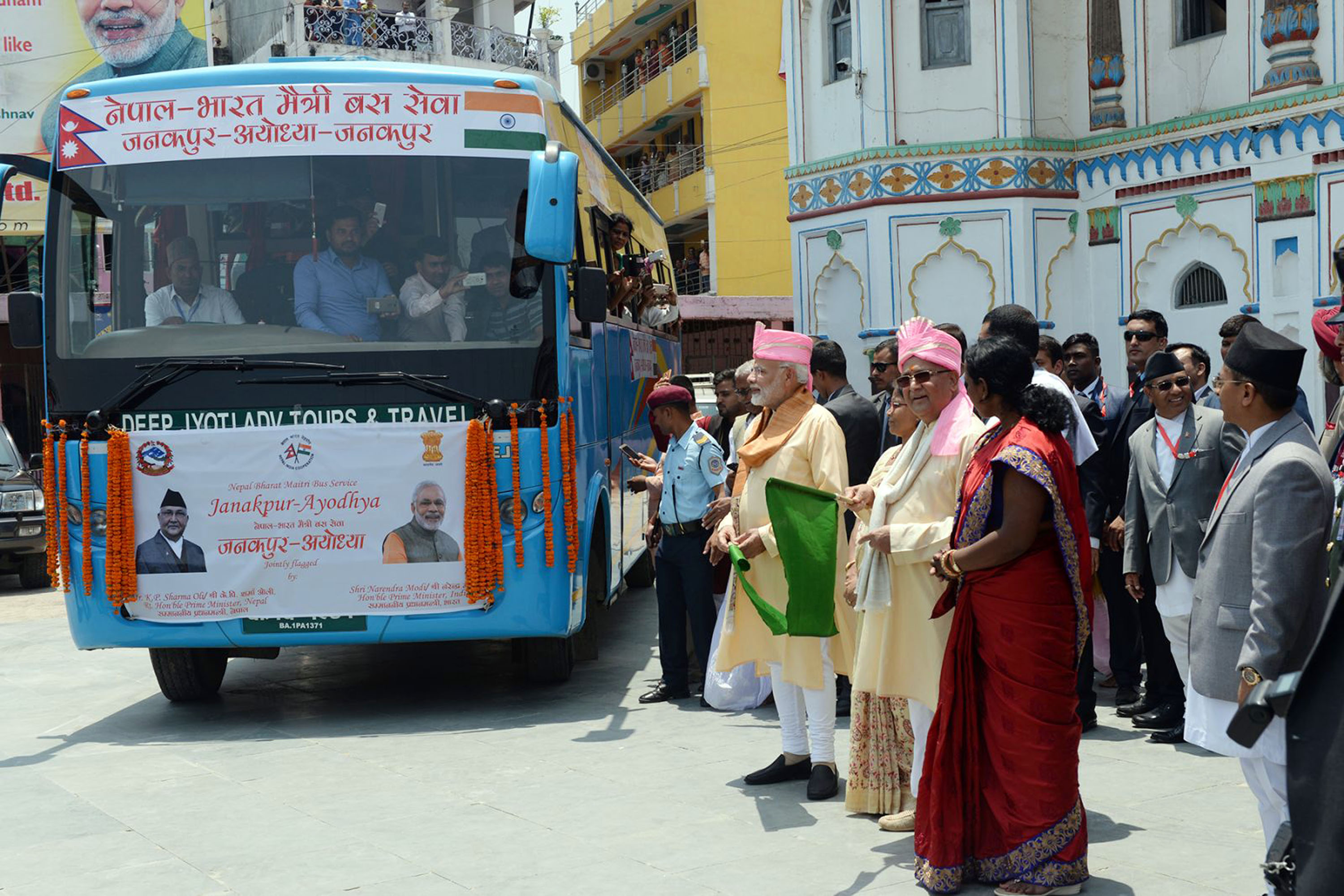 दुवै देशका प्रधानमन्त्रीबीच भेट हुने अवसर विरलै आउने भएकाले मोदीको भ्रमणका क्रममा सांकेतिक रूपमा बससेवा सञ्चालन गरिएको मन्त्रालयलले जनाएको छ । राम र सीताको चरण परेका स्थललाई जोड्ने क्रममा भारतको सीतामढी भएर अयोध्याका लागि बस सेवा सञ्चालन हुनेछ । सीतामढी हुँदै अयोध्या पुग्न करीब १२ घण्टा लाग्छ । जनकपुरबाट अयोध्याको दूरी ५४४ किलोमिटर छ । पहिलोपटक जनकपुरबाट अयोध्या गएको बसको यात्री बनेर फर्किएकी जनकपुरकी उपप्रमुख मिश्रले आफूहरू भिट्टामोड हुँदै भारतीय राजमार्गबाट अयोध्या पुगेको बताइन् । बस करीब १० घण्टाको यात्रापश्चात् जनकपुरबाट अयोध्या पुगेको थियो ।