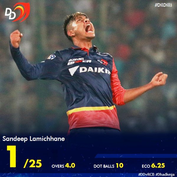 रोयल च्यालेन्जर्स बैंग्लोर विरुद्धको खेलमा शनिबार डेब्यूको मौका पाउँदा सन्दीपसामू चुनौतीको पहाड थियो । किनकी सन्दीपले आइपिएलकै सबैभन्दा राम्रा ब्याट्सम्यान आवद्ध टिमविरुद्ध बलिङ गर्दै थिए । पहिले ब्याटिङ गरेको दिल्लीले बैंग्लोरसामू १ सय ८२ रनको लक्ष्य पेश गर्यो । जहाँ सन्दीपलाई दिल्लीका कप्तान श्रेयस ऐयरले पहिलो ओभरमा बलिङ दिएर जोखिम मोले ।