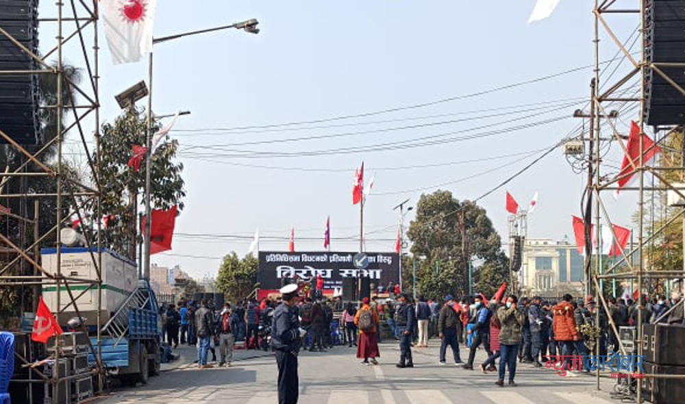 यसअघि पुस १२ गते प्रचण्ड–माधव समूहले भृकुटीमण्डप अगाडिको सडकमा आयोजना गरेको विरोधसभामा पनि हजारौँ प्रदर्शनकारी भेला भएका थिए । त्यसबेला ५० प्रदर्शनकारी उतार्ने लक्ष्य लिएको नेकपाले त्योभन्दा बढी भेला भएपछि ठूलो ठाउँ खोज्दै यसपटक भद्रकाली-पुरानो बसपार्क सडक रोजेको हो । अहिले त्यसो सडकखण्डमा गाडी जान दिइएको छैन ।