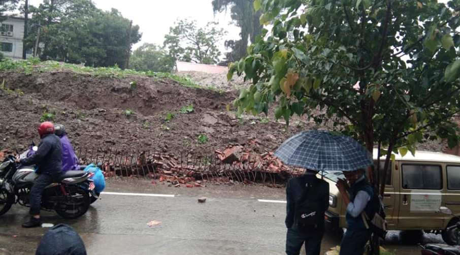 लगातारको वर्षाले भत्कायो सिंहरदरबारको पर्खाल
