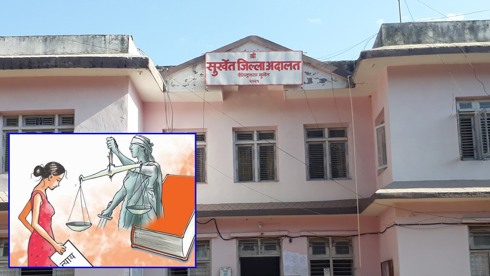 जिल्ला अदालत सुर्खेतका स्रेस्तेदार भुपाल भण्डारीले अदालतमा आउने मुद्दामध्ये ६० प्रतिशत मुद्दा महिलासँग सम्बन्धित हुने गरेको बताए । उनले गत साउनदेखि मंसिर ५ गतेसम्म २१ वटा यस्ता मुद्दा दर्ता भएको जानकारी दिए । उनका अनुसार घरेलु हिंसा, मानाचामल, बलात्कार, अंशबण्डा, बहुविवाह लगायतका मुद्दा अदालतमा दर्ता हुने गरेको छ । महिलामाथिको हिंसासम्बन्धी मुद्दा बढ्नुको कारण ‘आफ्नो अधिकार प्रयोग गर्नुपर्छ । अन्याय सहनु हुन्न’ भन्ने चेतनाको विकास भएको भण्डारीको बुझाइ छ ।