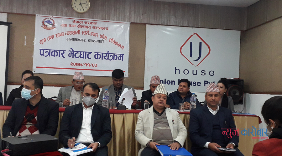 युवा तथा साना व्यवसायी स्वरोजगार कोषले सोमबार काठमाडौंमा एक कार्यक्रमको आयोजना गरी हालसम्म कोषले गरेका कार्य र भावी योजनाबारे प्रष्ट पारेका हुन् । कोषले नियमित कर्जा लगानी गर्ने तरिकामा केही परिवर्तन गरेको कोषको कार्यकारी उपाध्यक्ष डा. देवराज रोका (कल्याण)ले बताए । पहिला कर्जा लगानी गर्दा बैंक, वित्तीय, तथा सहकारीहरुलाई नै व्यवसायी छनौट गर्ने अधिकार रहेकोमा अब कोषले नै व्यवसायी छनोट गरी बैंक, वित्तीय र सहकारीमार्फत् कर्जा लगानी गरेको उपाध्यक्ष रोकाले जानकारी दिए । उनले अबको छनोटमा बेरोजगार वर्गलाई पहिले छान्ने र स्वरोजगार कोष उनीहरुमाझ पु¥याउने योजना भएको उल्लेख गरे ।